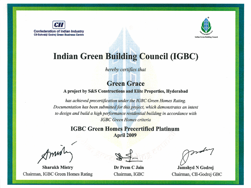 We are proud that Green Grace is a pilot project registered under the Indian Green Building Council* (IGBC) rating system and are committed to live up to the challenge.